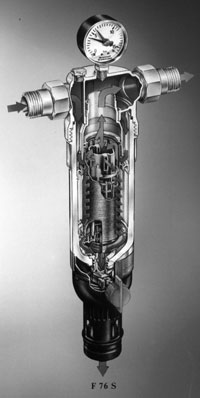 Если Вы живете за городом, то к вопросу водоснабжения следует подходить более серьезно. Ведь даже колодцы, находящиеся на расстоянии 50 метров и вроде бы питающиеся от одного водонесущего слоя, могут сильно отличаться друг от друга по составу воды. Рекомендуется сначала сделать анализ воды, причем полный химический, включающий в себя не меньше 20 параметров. И по результатам анализа уже подбирать оборудование: фильтр механической очистки, обезжелезиватель, умягчитель, дезинфектор, питьевую систему и т.д. И что бы Вам не "советовали" продавцы различных "суперфильтров", универсальных систем на сегодняшний день нет. Состав необходимого оборудования надо подбирать для каждого конкретного случая, и при его подборе исходить из химического анализа воды. Как строится система водоочистки? Система очистки ставится ступенями, т.е. нет фильтра, который бы защитил "сразу" и ото всего, а есть фильтры, которые справляются с определенной группой загрязнителей. Вот из таких отдельных фильтров, как из блоков, и строится система очистки на любую производительность. Устанавливаются они в определенной последовательности: I - Фильтры механической очистки. Тип фильтра выбирается в зависимости от типа загрязнения, имеющегося в Вашей воде. Если это твердые частицы типа песка, ржавчины, то можно применить сетчатые фильтры - типа Honeywell. По возможности лучше поставить фильтр с автоматической промывкой - следить за ним не надо, он все сделает сам и вовремя. Автомат промыва - это таймерное устройство, которое периодически открывает вентиль и включает промывку фильтра. Оно программируется на время от 4 минут до 3 месяцев. Периодичность промывки выбирается так: при первом включении фильтра засекается время, за которое разность давления воды на входе и на выходе из фильтра достигнет определенной величины (что обусловлено загрязнением сетки фильтра), например 0,5 атм. На этот временной интервал и устанавливается таймер фильтра, и в дальнейшем он будет сам включать режим очистки (по истечению этого интервала времени). В рабочем режиме поток воды направлен от периферии в центр фильтра. При очистке фильтр сам переключает направление потока воды (изнутри - наружу) и таким образом интенсивно очищает фильтрующую сетку, сбрасывая весь осадок, накопившийся на ней в дренаж. Фильтры механической очистки Honeywell. имеют много модификаций - есть фильтры с редуктором, понижающие давле-ние на входе в фильтр, если оно слишком большое. Такие фильтры используются, в основном, в системах городского водоснабжения, когда давление в сети превышает 6 атмосфер. Если в Вашей воде присутствует тонкая фракция типа глины или ила, то сетчатый фильтр не подходит. Такие примеси слишком быстро забивают поверхность сетки фильтра, прекращая его работу, поэтому бороться с такими явлениями приходится несколько по-другому. В таких случаях используется “универсальный корпус”, в который можно поместить любой из необходимых видов засыпки. В качестве фильтрующей засыпки используются гравий, песок, антрацит и т.п. Такой фильтр убирает из воды тонкую фракцию за счет пропускания воды через значительный объем градиентной засыпки. Промывается фильтр так же обратным током воды. Пожалуйста, чуть более подробно об «универсальном корпусе”? Для управления фильтром, в основном, используются автоматизирован