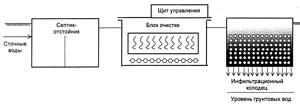 Чем отличалась обычная технология? Как правило, когда создается система биологической очистки, то никаких биологических объектов искусственно не вводится. Они развиваются сами, поскольку содержатся в любом органическом продукте. То есть стоками заполняется емкость, в неё подается воздух и микробы, которые в этих стоках уже присутствовали, начинают в созданных для них идеальных условиях интенсивно размножаться. Вот тут-то, во время этого неконтролируемого процесса возникает сам по себе ил и постепенно его количество становится избыточным. Если мы хотим избавиться от избыточного ила, то поступаем так - построенная конструкция (аэрируемая емкость - "аэротэнк") разбивается на секции (как бы ступени), в каждую из которых искусственно заселяется определенная биологическая культура. В совокупности все эти культуры и обеспечивают полную очистку воды при отсутствии избыточного ила. Во время пуско-наладочных работ этот процесс конечно сложнее, чем "естественный", и обходится он несколько дороже, но зато Вы навсегда избавлены от необходимости чистить Ваше "очистное" сооружение. Вот этим и отличается новая технология. Вся установка для коттеджа на семь человек занимает объем 1х1х3 м (причем 3 - это высота). Такую компактную установку можно разместить в любом месте Вашего даже небольшого участка. Она не требует никакой санитарной зоны и её можно монтировать, отступив от фундамента 2-3 метра. В ней обязательно есть компрессор, т.к. необходима подача воздуха, и обязательно есть ультрафиолетовая лампа для обеззараживания стоков. Очищенный сток можно использовать для технических нужд (мойка машины, полив и т.д.), в общем, для любых целей кроме питья, приготовления пищи и мытья посуды. Этот сток полностью соответствует нормативным требованиям, предъявляемым к сточным водам перед сбросом в водоем рыбохозяйственного назначения. Если Вам не нужно так много технической воды, то эти стоки можно сбрасывать в любую речку или озеро, и никакая СЭС Вам и слова не скажет. Если рядом нет водоема, а техническая вода Вам не нужна, то обычно делают так: в земле ставится накопительная емкость без дна. Дно заменяет система естественных фильтров - слои гравия и песка. Вода из емкости через этот естественный фильтр постепенно просачивается в грунт. Такие установки есть и для отдельно стоящего коттеджа, и для нескольких домов (если Вы решите объединиться с соседями или родственниками), и даже для целых поселков. Причем, чем больше домов одновременно подключено к одной установке, тем ниже получается приведенная стоимость, т.е. каждая семья платит меньше. Готовых установок фирмы не выпускают. Каждая установка проектируется и выполняется под индивидуальный заказ. Установка при заказе рассчитывается на определенное количество проживающих в доме людей, так же должно учитываться наличие бытовой техники, использующей воду (ванны, посудомоечные машины и т.д.). Эти расчеты должны быть проведены с определенной точностью, т.к. и запас и нехватка объема в равной степени недопустимы. Ведь поступающие сточные воды служат питательной средой для бактерий, производящих очистку. И, если поступления стоков будет, например не хватать, то бактериям будет просто не хватать питания. Если людей в доме будет жить мало, то даже если Вы будете принимать ванну по 4 раза в день, то это бактер