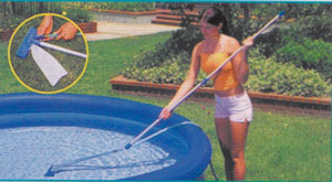 Чистить можно и наполненный бассейн. Как правило, вследствие загрязнения вдоль ватерлинии (это граница водяного зеркала) на стенках бассейна образуется темная полоска. Для ее удаления разработано специальное чистящее средство «Рандфикс», которое подходит для чистки практически любой поверхности: кафеля, пленки и др. Состав этот густой консистенции, поэтому хорошо удерживается на вертикальных стенках бассейна. Заметим, что обычные чистящие средства в этом случае лучше не применять, поскольку вместе с ними в воду попадают вещества, которые способствуют образованию пены, помутнению воды и росту водорослей. Загрязняющие вещества, которые скапливаются на дне бассейна в виде осадка, можно удалить с помощью специального подводного пылесоса. Этот уникальный агрегат моет и чистит поверхность, всасывая грязь, которая оседает в фильтровальной установке.