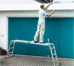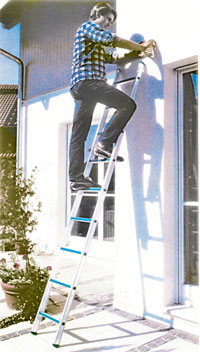 Лестницы специального назначения Специальные лестницы - это не только стремянки, как мы привыкли думать. Они не похожи друг на друга, но при этом являются лестницами, так как во-первых, позволяют осуществлять функцию подъема - спуска, а во-вторых, имеют две направляющих и энное количество поперечин между ними, служащих ступенями. Это лестницы самого разнообразного назначения, которые выполняют свою функцию - подъема "по необходимости". Разумеется, стремянки - это самые известные из тких помощниц, которые есть почти в каждом доме, пережившем ремонт и строительство. Разделение подобных лестниц на бытовые и профессиональные, в основном, определяется с помощью нескольких критериев. Высота подъема - бытовые лестницы стремянки позволяют осуществлять подъем на высоту от 2 до 4 метров, профессиональные, раздвижной конструкции значительно длиннее, устойчивее и ограничиваются по высоте только из соображений безопасности; Максимальная нагрузка на ступень - чем больше возможная максимальная нагрузка на ступень лестницы, тем она ближе к классу профессиональных. Бытовые, как правило, ограничены 100-120 кг; Наличие нескольких функций - простейшая бытовая лестница - стремянка выполняет только роль лестницы. Профессиональные - используются и в качестве строительных лесов, козлов, имея надежные способы фиксации в разных положениях и на разной высоте. Простейшие стремянки следует выбирать, обращая внимание на надежность соединений всех узлов, фиксаций, наличия нескользящих ступеней. В разложенном виде лестница должна иметь геометрически правильную конфигурацию. Это определяется визуально - при взгляде на лестницу, стоящую на ровной поверхности пола, вы должны увидеть, что ножки лестницы прилегают к полу равномерно и не имеют зазоров, которые можно выявить дополнительной проверкой, покачивая лестницу в стороны. На ножках лестницы должны быть нескользящие и нецарапающие поверхность пола накладки. Для бытовых целей, самый надёжный и удобный вариант - универсальная лестница, имеющая ступени с двух сторон. Это позволит использовать её при работе вдвоём, что, как известно бывает необходимо очень часто. Для профессионалов производят лестницы, трансформирующиеся в строительные леса, стремянки, которые могут вертикально раздвигаться и превращаться в телескопические приставные. Этот тип мобильных лестниц имеет массу моделей и представлен исключительно широко. Стоит однако отметить, что выбирать следует продукцию известных компаний, это существенно снижает риск падения и следующих за этим последствий. Обычно стремянки делают, как правило, из металла и дерева. Несущие стойки - из железных или стальных труб, а ступени деревянные. Конечно, особым изяществом эти сооружения не отличаются, они неуклюжи, тяжеловесны и даже в сложенном виде занимают много места. Понятно, что деревянные стремянки непрактичны. Дерево со временем рассыхается, трескается, расшатывается в местах крепления ступеней к стойкам и не выдерживает нагрузки свыше 100 кг. К тому же деревянная стремянка из 5-6 ступеней - вещь довольно тяжелая. Поэтому лучшим материалом для стремянок был и остается металл: алюминий и дюраль. В принципе дюраль (или иначе дюралюминий) - тот же самый сплав. Но производители стремянок утверждают, что это все же разные вещи: мол, в дюрале процент алюминия мен