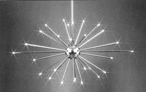 Фирма "Цумтобель" знаменита тем, что она разработала специальную отражающую пленку, которая позволяет изготавливать светильники значительной протяженност. Одна лампа, спрятанная в стеклянную трубу, покрытую изнутри такой пленкой, может осветить её на довольно большую длину, и следовательно осветить больщую площадь под такой лампой. До сих пор никто не превзошел своеобразный рекорд фирмы "Цумтобель", когда одна лампа освещает трубу длиной 22 метра (эта лампа как памятник установлена при входе в офис фирмы). Для гостиниц широкой попу-лярностью пользуются изделия таких фирм как "ВКР", "Месалль". Их изделия украсят интерьер любой гостиницы - это прикроватные, настольные, потолочные и т.п. светильники. Например, вот такие прикроватные светильники на поворотной несколько необычной штанге.