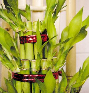 Бамбук - универсальный, экологически чистый материал. Изделия из бамбука не боятся влаги (так, бамбуковые панели подойдут для отделки помещений с повышенной влажностью, например, бань, саун), устойчивы к перепадам температуры, не выгорают на солнце. Бамбуковые плиты не расслаиваются. К тому же бамбук - очень прочный материал. Этот материал широко представлен на рынке в различных исполнениях. Это и паркет, и обои, и жалюзи, изготовленные из бамбука. Бамбук, как декоративный материал присутствует также в светильниках и мебели. Природная красота и прочность бамбука позволяют использовать его как в отделке интерьеров, для создания элементов мебели, летних беседок, веранд, а также для декорирования квартир, офисов, ресторанов, летних площадок, идеален для создания ландшафтного дизайна и несущих конструкций. Бамбук легко и ровно колется в продольном направлении, что позволяет отделывать бамбуком плоскости (стены, потолок...) как вагонкой. Одно свойство нужно иметь в виду при его креплении. Бамбук можно привязывать, клеить, сверлить, прожигать, однако бамбук не рекомендуется прибивать гвоздями. Внутри помещения бамбук можно использовать в естественном виде или обожженный. Для диаметров стволов бамбука более 3 см целесообразно внутренние перегородки пробивать металлическим прутком, что уменьшает возможность растрескивания цельных стволов. При использовании снаружи помещения бамбук, так же как и древесину целесообразно покрывать защитными составами. На улице бамбук может приобрести темную окраску. Стволы бамбука - оригинальный материал для создания светильников, ширм, рам для картин и зеркал и просто декорирования интерьера. Обладают высокой прочностью, существенно большей, чем у большинства других твердых древесных пород, высокой огнеупорностью, прекрасными влагоустойчивыми, звуко- и теплоизоляционными свойствами, абсолютно ровной и волокнистой структурой, что особенно ценится в строительстве и отделочных работах. Диаметр бамбуковых стволов может быть самым разнообразным - от одного до пятнадцати сантиметров. Из стволов бамбука сооружают различные беседки, летние площадки, мансарды. Стыки и соединения стволов можно обмотать пеньковым или пальмовым канатом, что только подчеркнет оригинальность изделия. Из стволов с большим диаметром получаются прекрасные колонны, которые удачно впишутся, например, в интерьер ванной комнаты или столовой. Распиленными вдоль стволами можно отделать стены, барные стойки, потолки. Благодаря природной влагостойкости бамбука его можно использовать и для наружной отделки стен, а также стен ванных, саун и помещений с бассейнами. Из четвертинок бамбукового ствола выходят прекрасные ровные плинтуса. Ну и, конечно же, из бамбуковых стволов делают очень оригинальную и надежную мебель, единственная проблема - ее довольно сложно найти в магазинах, а мастеров-столяров работающих с этим материалом не так уж много. Однако, при желании, можно найти и дизайнеров и мастеров, которые воплотят ваши интерьерные фантазии в неповторимых эксклюзивных изделиях из бамбука. Изделия из бамбука используют для создания природной атмосферы тропических джунглей и интерьеров в восточном или африканском стиле. Также бамбук оригинально вписывается в интерьеры хай-тек и минималистического стиля. Интерьер в стиле "Ба