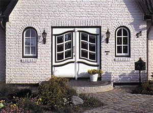 Как проложить в ячеистом бетоне скрытую проводку? Штрабы под электрокабель в наиболее простом случае можно проложить при помощи ручного штрабореза. Можно использовать специальную фрезу, но это опять-таки инструмент для строителей-профессионалов. Наиболее доступным механическим инструментом, подходящим для этих целей, является ручная циркулярная пила. Надо только отрегулировать глубину погружения диска в ячеистый бетон, чтобы не прорезать лишнего. Циркулярной пилой на стене делаются два параллельных прореза, расстояние между которыми равно толщине трубы, в которую будет уложена проводка. Затем в один из пропилов вставляете, например, ту же большую отвертку и слегка наклоняете её в сторону второго пропила. Промежуток между пропилами просто сломается в своём основании. Вынув обломки, Вы получите прекрасную и идеально ровную штробу. Выемки для выключателей, розеток образуются высверливанием дрелью с инвентарным сверлом. Ну, а теперь давайте обсудим возможные варианты внешней и внутренней отделки дома из ячеистого бетона. О некоторыхз вариантах внешней отделки мы довольно подробно говорили в прошлый раз. Поэтому просто напомним эти варианты. Наиболее простой и дешевый вариант наружной отделки - это оставить все как есть. Ну, может быть чуть-чуть подчистить потеки клея и зашпаклевать ремонтным составом выбоины, если таковые возникли при строительстве. И в таком виде дом гарантированно простоит не меньше 80-ти лет. Тем, кому нравится чтобы между блоками были очень отчетливые швы можно рекомендовать вот такой вариант внешнего оформления. Здесь с каждого блока предварительно снята фаска. Стены, безусловно, получаются очень красивые. Но и трудоемкость у такого варианта тоже не маленькая, поскольку фаск5и снимаются вручную. Второй вариант отделки чуть более дорогой - это так же все подчистить и покрасить хорошей фасадной краской. Остальные же варианты отделки будут более дорогостоящими. Наиболее простой из них - оштукатурить дом как снаружи, так и изнутри. Причем слой наружной штукатурки будет всего 7 мм - именно такой величены слоя вполне достаточно для того, чтобы швы между стеновыми блоками не было видно ни издали, ни вблизи. Сейчас выпускается множество прекрасных штукатурок, способных удовлетворить любой, даже самый требовательный вкус. Мы советуем своим клиентам применнять штукатурки торговой марки «Полимикс». Работа с этими штукатурками не представляет больших проблем даже для начинающих (это я испытал на себе). И сохнет хорошая штукатурка почти сутки, так что у Вас всегда есть время для исправления допущенных ошибок. Единственное требование к применяемым отделочным штукатуркам - они не должны мешать процессу «дыхания» ячеистого бетона, иначе мы потеряем те преимущества, которые заложены в самом материале. (Вопрос о применении штукатурок и сухих смесей, используемых при строительстве домов из ячеистого бетона, на самом деле не такой уж и простой. И, что самое главное, очень интересный. Мы подробно рассмотрим его в ближайшем номере нашего журнала. - В.К.) Оштукатуренный фасад можно покрасить фасадной краской (хотя сейчас в продаже довольно много фасадных штукатурок, которые красить уже и не надо, т.к. они сами по себе являются прекрасной внешней отделкой). Изнутри оштукатуренные стены можно покрасить (благо красок се