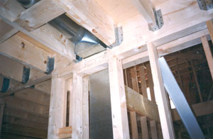 К недостаткам - скрип конструкции. Деревянная конструкция скрипит просто «по определению». И первое, что настораживает владельцев новых домов – скрип полов. Конечно, при желании его можно устранить (не скажем, что это очень легко сделать): использованием клея, установкой амортизационных прокладок, повышением жесткости конструкции и, конечно же (и прежде всего), повышением культуры строительства. Поправки на местные условия. Российский потребитель обязательно, вносит поправки в обкатанные многолетней Канадской практикой правила проектирования. Эти изменения касаются прежде всего конструкции фундаментов т.к. подвалы стараются использовать под гаражи. Опыт показывает, что заглубленные гаражи склонны к подтоплению и компенсировать эту их склонность можно только за счет усложнения инженерных решений и, следовательно, удорожания конструкции. Второе изменение - использовать чердачное пространство под утепленную мансарду. Это изменение, видимо, тоже обусловлено стереотипом сознания - «использовать площади строения по максимуму». Правда, при использовании соответствующего проекта, воплощении в жизнь этого требования никаких технических сложностей с собой не несет. К чисто российским особенностям можно отнести и установку усиленных входных дверей с домофоном вместо ажурных остекленных, как это принято в Канаде. Защита оконных стекол специальной пленкой и установка оконных решеток - тоже вынужденная дань нашей реальности. Но это еще не все изменения. Дело в том, что под удобством дома канадцы подразумевают насыщенность инженерными коммуникациями. В систему коммуникаций входит: канализация, электроснабжение с резервными источниками питания, бесперебойная подача фильтрованной горячей и холодной воды, а также разветвленная система вентиляции, с помощью которой обогреваются и охлаждаются все помещения дома. И все эти внутренние коммуникации закладываются в проект дома. Кроме того большой популярность в Канаде пользуются централизованные системы уборки, при которых монтируется большой стационарный пылесос с «циклоном» вместо пылеулавливающего мешка, устанавливаемый вне пределов жилой зоны (например, где-нибудь в подвале), а во всех помещениях устанавливаются «розетки» для присоединения пылесосного шланга. В результате нет необходимости таскать пылесос по комнатам и этажам, и воздух в помещениях получается гораздо чище. Если с первыми тремя типами перечисленных инженерных коммуникаций отечественный потребитель в принципе согласен, то с четвертой (система вентиляции, являющаяся одновременно системой отопления и кондиционирования) он не согласен почти категорически. Пока отечественный потребитель предпочитает привычный котел, работающий на двух видах топлива - газе и в качестве резерва – солярке. Возможно, это происходит потому, что такие системы требуют качественного проектирования и исполнения, а отечественные строители делать этого пока не научились. А между тем системы воздушного отопления, совмещенного с вентиляцией сами по себе очень хороши. Хорошо отлаженная система совмещенного отопления и вентиляции по скрытым оцинкованным коробам, включается всего на несколько минут в час и при этом полностью обеспечивает комфортные условия, а также необходимую кратность воздухообмена. В ней предусмотрены фил