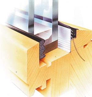 Более плотные конструкции из ангорской сосны изготавливает фирма "Кодар сервис". Опираясь на западную технологию, профиль склеивается из трех отдельных брусков, подобранных по цвету и фактуре, с направленными в разные стороны волокнами, что исключает деформацию. В трехслойный клееный брус толщиной 78 мм здесь устанавливают двухкамерный стеклопакепакет толщиной 41мм.