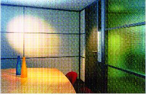 Световые (стационарные) перегородки разбивают пространство помещения на различные участки, что позволяет использовать их для разных целей и с отличным друг от друга интерьером. Перегородки, выполненные в виде ширмы позволяют обособить участок помещения под различные нужды и т.п. Световой перегородкой можно оформить стенную нишу или проем с отделкой деревом откосов и обналичиванием.