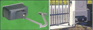 Отличительные особенности: Ёимеют подсоединенные заранее задублированные концевые выключатели открывания и закрывания, что значительно ускоряет установку; Ёустановка достаточно проста, т.к. сварка с воротами не требуется; Ёмеханизм полностью металлический; Ёкомпактный корпус устойчив к ударам, не имеет острых углов; Ёшарнирный рычаг защищен от срезания, оцинкован и окрашен; Ёспециальный рычаг с размыкающим механизмом позволяет вручную открыть или закрыть ворота, временно отключив привод; Ёмеханизм открывания отключается поворотом ключа. Электромеханические приводы Trigon фирмы CASALI (Италия). Модель TRIGON является универсальной. При помощи нее могут быть автоматизированы ворота c расстоянием от плоскости крепления привода до центра петли ворот до 350 мм. Это, как правило, ворота с большими колоннами. Эта модель не требует относительно сложных расчетов геометрии установки, так как при установке собранный привод используется как шаблон. Отличительные особенности: Ёвозможность автоматизации ворот с не стандартным расположением створок и со створками открывающимися "наружу"; Ёразблокировка специальным ключом для аварийного открывания при пропадании напряжения. Электромеханические приводы ARC (т. м. «Novotecnica») компании DITEC S.p.a. (Италия). Предназначены для автоматизации двухстворчатых распашных ворот частного применения. В модели DO IT ARN Arc предлагается полный комплект оборудования: Ёпривод ARC 1B (2шт.); Ёблок управления LOGIC DO IT; Ёпара фотоэлементов LAB-22; Ёпанель управления с ключом LAB-50 или LAB-55; Ёсигнальная лампа с встроенной антенной LAMP N; Ёприемник радиоканала (300 МГц) BIT NK1 (BIT NK2); Ёрадиобрелок - передатчик (300 МГц) BIT N1 (BIT N2). Электромеханические приводы FERNI (т. м. «Novotecnica») компании DITEC S.p.a. (Италия). Компактный привод. Идеальная система для автоматизации распашных ворот со створками шириной до 4 м и большими колоннами. Модели с самоблокирующимися двигателем удовлетворяют самым различным требованиям установки. Отличительные особенности: Ёэлектромеханика не требует профилактического обслуживания; Ёпросты в установке и надёжны в работе; Ёпри отсутствии электропитания в сети возможна разблокировка механизма вручную с помощью ключа. Электромеханический привод FLEX F500 фирмы CAME (Италия). Реверсивный привод, укомплектованный шарнирным рычагом. Разработан для небольших частных распашных ворот, гаражных ворот и калиток с шириной створки до 1,6 м, а так же для пешеходных ворот с интенсивным режимом работы. Отличительные особенности: Ёлегко устанавливается на узкие колонны толщиной от 8 см; Ёв случае обнаружения препятствия при движении в любом направлении, электронная система безопасности немедленно останавливает ворота; Ёворота запираются электрозамком, который может быть разблокирован только специальным ключом; Ёпривод легко интегрируется с любой системой контроля доступа; Ёблагодаря системе постоянной консистентной смазки, привод не требует периодического технического обслуживания. Приводы подземной установки представляют собой механизмы, устанавливаемые в проезжую часть вблизи оси петель створки ворот. Обычно привода данного типа используются в случаях жестких требований к сохранению внешнего вида автоматизируемых ворот (например, памятников архитектуры) т.к. отлично сочетаются с любым архитектурным стилем. По принципу действия т