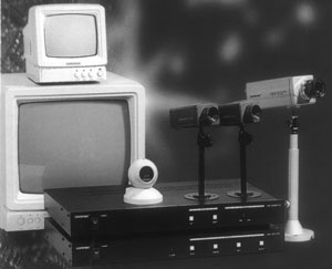 В наших предыдущих обзорах мы начали разговор о безопасности нашего жилья. Начали мы его с обсуждения принципов выбора входной двери. Затем мы рассмотрели варианты квартирных видеодомофонов, которые предлагаются нам современным рынком. Но на этом, конечно же, тема безопасности нашего жилья не исчерпывается. Да и кроме жилья есть еще офисные помещения. Поэтому этот свой обзор мы решили посвятить видеосистемам, которые как в быту, так и на производстве могут оказать большую помощь их владельцам в решении вопросов безопасности. Все видеосистемы делятся на две группы CCIR и EAI. Основное различие между ними в частоте смены полей развертки. У нас напряжение сети 220В - 50 Гц, за рубежом 110В - 60Гц. Чтобы частота сетевого напряжения не давала помех на частоту развертки монитора лучше, чтобы они были одинаковыми. Характеристикам электросети России соответствует CCIR - система, за рубежом EAI. Система передачи цвета для России в основном - PAL, которая принципиально совместима с системой SECAM (в этой системе исторически работали все советские телевизоры). Поэтому покупаемые для использования на территории России видеосистемы для получения лучшего качества изображения должны соответствовать указанным характеристикам. Начнем мы обзор с наиболее простых систем, выпускаемых фирмой HI-TRON. К таким системам можно отнести три: SYSTEM CCNI-052N10, BW-51XX. И КМ-07. Система CCNI-052N10 (ССМ-052NICRC-60N: NTSC (EIA), ССМ-052CICRC-60C: PAL (CCIR)) относится к современным системам универсального применения. Состоит из монитора, камеры с микрофоном, кабеля (18 м) и адаптера DC 15V. Система проста в установке: установив камеру в одном помещении и направив её на объект, соедините её кабелем с монитором, установленным в соседнем помещении. Когда необходимость в видео наблюдении отпадет - демонтируйте конструкцию. Особенности: Ёодносторонняя связь; Ёпозволяет использовать одновременно две камеры при размещении картинок на двух каналах, которые просматриваются последовательно; Ёсистема совместима с видеомагни-тофоном (при необходимости); Ёпозволяет получить качественно устойчивую картинку, как при ярком, так и при тусклом освещении. Область применения: Ё превосходный контроль для детских учереждений, для наблюдения за спящими детьми; Ёдля организации временного наблюдения в офисных и производственных помещениях, универсамах, гостиницах, больницах и т.д. В общем случае эта система хороша там, где надо срочно организовать временное наблюдение и мы бы назвали её "мобильной системой развертывания". Еще более проста в обращении система BW51-XX. Состоит из 5-дюимового монитора, переносной 1.3-дюймовой видеокамеры с микрофоном и "прищепкой" для закрепления и адаптера DC 15V. Никакого соединительного кабеля нет - камера и монитор соединены по радио. Система совместима с видеомагнитофоном и при необходимости можно производить видеозапись. Эта система незаменима при наблюдении за детьми, ну а область применения практически аналогична системе CCNI-052N10. Отсутствие кабеля, который ограничивает удаление камеры от наблюдателя и о который можно споткнуться, конечно же, является неоспоримым преимуществом этой системы. Еще одним представителем относительно простых видеосистем является система RV-07. Эти системы выпускаются несколькими производителями и предназначены для установки на большегрузных автомобилях. Состоит из 5 - 