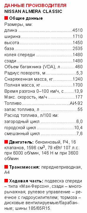 «Лагуна»? «Пассат»? Нет, на весеннем солнышке лихо и уверенно прописывает вираж «Nissan Almera Classic», поблескивая хромом.