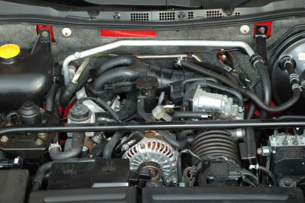 Есть приятные мелочи в виде подсветки под внешними зеркалами места посадки в авто, приборная панель не просто гаснет, а оставляет небольшое неоновое свечение в «колодцах». Но главное – это технические решения. Легкий мотор, который под капотом найти сложно, сняв защитный кожух, мы были удивлены пустотой под капотом. Такое ощущение, что генератор, стартер и прочее навесное оборудование просто крепятся на какой –то кронштейн, а не на собственно мотор. Вес мотора очень мал, из-за чего вес передней части автомобиля очень мал, а общая развесовка близка к идеальной.