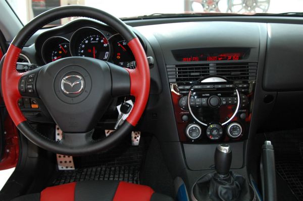 Мне также общий дизайн очень понравился, еще когда я видел только фотографии в журналах, есть четкая законченность, очень удачно сделаны дизайнерские вкрапления в виде ротора в разных местах машины. Это и отверстие в переднем спойлере, и задняя противотуманная лампа, а ля болид F1 в виде ротора, и отверстия в сиденьях, и ручка КПП и изгибы в капоте и многие другие мелочи, создающие очень приятно ощущения стиля в авто. Несмотря на то, что это спорт кар, машина напичкана различными наворотами под завязку.