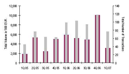 Москва, 2 мая 2007 – В первом квартале 2007 года общий объем инвестиций в торговую недвижимость континентальной Европы составил 3,1 миллиардов евро, при этом в первом квартале 2006 года объем инвестиций составлял 5,8 миллиардов евро.