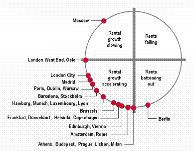 Согласно отчету European Office Property Clock компании Jones Lang LaSalle за первый квартал 2007
