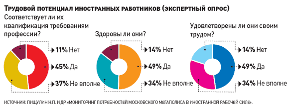 В этом году в Москве официально зарегистрировались по месту пребывания 500 тысяч иностранцев. Разрешение на трудовую деятельность получили 300 тысяч человек. Но из них только 100 тысяч легально устроились на рабочие места.