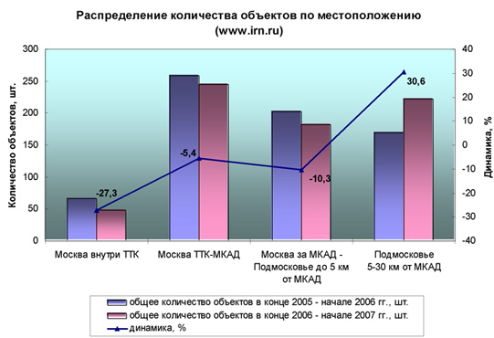 Характеристика количества объектов, ушедших с рынка и впервые вышедших на рынок в конце 2006 – начале 2007 гг.