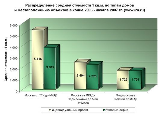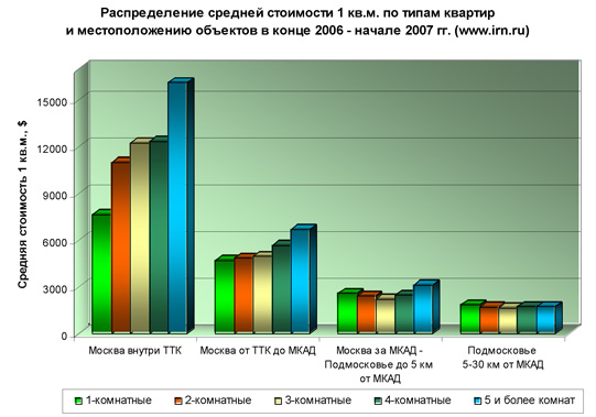 Средняя стоимость 1 кв.м. в конце 2006 - начале 2007 гг., $