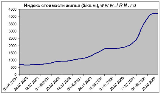 Индекс стоимости жилья в Москве в 2000 – 2007 гг.