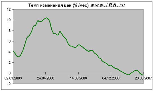 Замечания в отношении темпов роста цен Рекордный темп роста цен был зарегистрирован весной 2006 года (более 10% в месяц)