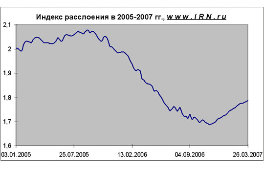 Появление незначительной отрицательной динамики (коррекция цен) в конце 2006 – начале 2007 гг.