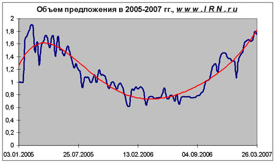 Замечания в отношении объемов предложения С конца лета – начала осени 2006 года наблюдается заметный рост объемов предложения, после их существенного падения в период ажиотажа.
