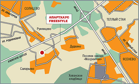 В полутора километрах от Кольцевой автодороги по Киевскому шоссе планируется строительство одного из крупнейших подмосковных развлекательных центров. Проект носит название "Фристайл парк" (Freestyle Park). Он имеет две особенности, отличающие его от аналогичных проектов. Во-первых, по замыслу застройщиков во "Фристайл парке" можно будет жить, работать и отдыхать, не покидая пределов комплекса. А во-вторых, даже если у вас есть жилье – приобрести еще одно здесь, специально для досуга.
