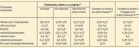 Конструкции – это стены, пол и потолок. Почему их нужно страховать, вопросов не возникает даже у детей. Цена полиса рассчитывается, исходя из рыночной стоимости квартиры . В среднем это 0,2–0,3% страховой суммы. На нее влияют еще и состояние дома (в каком году построен, из каких материалов) и близость к опасным объектам. Так, тариф на страховку конструкций квартиры без деревянных перекрытий в доме, которому меньше 20 лет, составит в среднем 0,15% от страховой суммы. А если здание старше, в его конструкциях использовано дерево, а из окна видна АЗС, – уже 0,35%. Впрочем, время меняет и представления о том, что нуждается в страховке. Владельцам квартиры в новом монолитном доме такой полис вообще вряд ли понадобится – им куда важнее застраховать внутреннюю отделку.