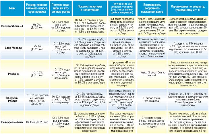 Возраст заемщика. Минимальный возраст для получения ипотечного кредита в большинстве банков - 21 год, Сбербанк кредитует и 18-летних. Как правило, выдвигается условие, чтобы на дату погашения кредита (окончания действия кредитного договора) заемщик был не старше пенсионного возраста: 60 лет для мужчин, 55 - для женщин. В то же время уже наблюдается тенденция увеличения такого «предельного» возраста - обычно на срок до 5 лет.