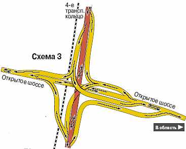Развязка Четвертого кольца на пересечении с Открытым шоссе — многоуровневая, на эстакадах.