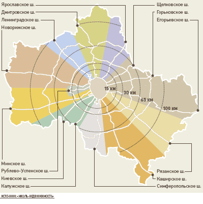 Цены на землю в ближнем Подмосковье (от $2 тыс. за сотку на востоке до $150 тыс. на западе) неизбежно приведут к имущественной дифференциации переселенцев. О дешевой загородной недвижимости в 15-километровой зоне не приходится мечтать даже, допустим, под Люберцами: пустой 10-соточный участок в живописном месте здесь обойдется в $200 тысяч. Богатый человек сюда не поедет (непрестижно и неидеально в смысле экологии), а поедет москвич, променявший типовую городскую квартиру на жизнь на природе.