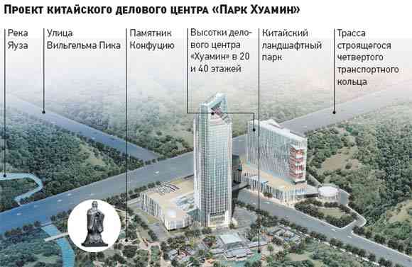 - Строить "Хуамин" смогут любые компании, которые выиграют тендер на строительство. Обслуживающий персонал - а работать здесь будут не только китайцы - составит около 2 тысяч человек. А две высотки бизнес-центра смогут вместить более 20 тысяч "белых воротничков", - сообщили "Известиям" детали представители китайского концерна "Хуамин". - Что касается ландшафтного парка, то композиция парковой зоны подчиняется принципам древней китайской философии. Главные элементы - камни, вода, цветы и деревья. В центре парка поставят памятник Конфуцию. Все работы будут вестись так, чтобы не нарушить экосистему местности.