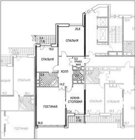 По современным меркам, кухня должна иметь достаточную площадь для того, чтобы выполнять также и функции столовой, а спальни располагаться как можно дальше от шумных общественных зон – родительская спальня должна иметь собственный большой санузел. Второй или третий, меньший по площади санузел, планируется «гостевым» и проектируется ближе ко входу в квартиру.