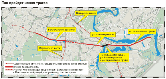 - По планам дальше магистраль должна соединиться с улицей Борисовские Пруды, но на пути возникает много природных и искусственных препятствий, - рассказали "Известиям" в НИиПИ Генплана Москвы. - Было принято решение рыть в этом месте тоннель. Этот путепровод соединит между собой улицы Кантемировскую и Борисовские Пруды, дав возможность вести новую трассу дальше на юг. Через улицу Борисовские Пруды рокада пойдет в сторону микрорайона Марьино. В дальнейшем есть планы даже соединить ее с улицей Верхние Поля.