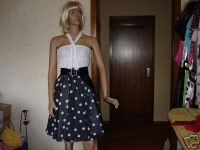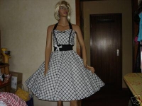 Сказочное платье времен Мэрилин Монро. Это новый стиль в женской моде. Ведь на одну только юбку требовалось огромное количество ткани. В талии «вставлена» широкая резиновая тесьма. Приманка для глаз. Эта резиновая тесьма растягивалась от 60 до 80 см.