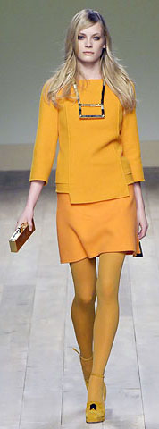 Оранжевый. Это безусловная новинка сезона, представленная John Galliano, Chloе, Emilio Pucci, Prada. Очень жизнерадостный оттенок, который противопоставлен более холодному желтому и неизбежно повысит настроение в пасмурный осенний день. Особенно хорош в трикотажных вещах.