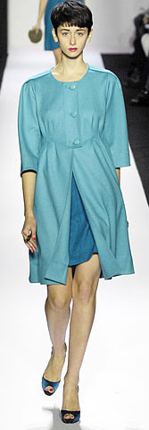Зеленый. Он, напротив, в этом сезоне приглушен, смягчен, лишен агрессивности. Это либо густые травянистые оттенки (Bill Blass, Celine), либо светлые нежные оттенки молодой листвы (Prada, Versace). Сочетание с черным делает эту палитру строгой и элегантной. Новинкой же можно считать предложения дизайнеров вечерних и коктейльных платьев в этой цветовой гамме.