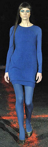 Синий. Нынешней осенью он активно борется с серым за звание «нового черного», что говорит об его универсальности. Скажем, Salvatore Ferragamo использовал именно синий для создания своего варианта актуальной шотландки, из которой изготовлены его пальто , пышные юбки-тюльпаны или просторные расклешенные брючные комплекты. Другие дизайнеры предпочитают просто использовать все богатство оттенков синего в чистом виде. Как оказалось, универсальность этого цвета проявляется и в возможности использовать самые разные ткани. Он хорош и в нежности тонкого шифона (платья и комбинезоны от Sonia Rykiel), и в тяжеловесности твида (пальто и костюмы от Valentino), и в мягкости трикотажа (кардиганы от Missoni), и в агрессивности кожи (куртки и жакеты от Donna Karan). Особенностью нынешнего сезона можно считать и то, что вещи в синей гамме предлагается носить с плотными непрозрачными колготами того же оттенка.