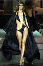 Лето-2005 проходит под знаком бикини. Самая провокационная модель купального костюма, в своё время вызвавшая не один общественный скандал, сегодня воспринимается как пляжная норма. Причем дизайнеры как будто были ограничены в расходе ткани и создали, наверное, самые маленькие бикини столетия. Микроскопические бюстье и трусики едва прикрывали загорелые тела манекенщиц на дефиле Christian Dior, Lagerfeld Gallery, Versace, Blumarine, Oscar de la Renta, Giorgio Armani . И форма во многом определила стилистическое направление коллекций. Sporty chic - это яркие чистые цвета, эргономичный крой, контрастная отделка плоскими кантами. Вдохновением для модельеров стали первые модели бикини, например, купальник из «Доктора Но» , который обрел культовый статус в начале 60-х и даже был воссоздан в одной из последних лент бондианы «Умри, но не сейчас» . Ещё одна модная примета – заниженная талия и кажущаяся «несочетаемость» лифа и трусиков: они вполне могут отличаться по рисунку и даже быть разных цветов.