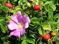 Шиповник (Rosa majalis). Лекарственными признаются несколько видов шиповника: коричный, морщинистый, даурский, майский, иглистый и ряд других. Все они содержат витамины, плоды считаются витаминным сырьем благодаря высокому содержанию аскорбиновой кислоты. В шиповнике также присутствуют такие вещества, как рутин и кверцитин, обладающие сосудоукрепляющим действием, витамины Е, В2, К, каротин. В основное плоды шиповника используются в качестве витаминного средства. Помимо этого настои шиповника обладают желчегонным действием, растворяют некоторые камни в мочевой системе. Эфирное масло обладает бактериостатическим, спазмолитическим, антигистаминным (противоаллергическим) и желчегонным свойством.