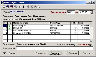 Конфигурация была ориентирована на фирму, занимающуюся продажей компьютеров и оргтехники, но подойдет для любой организации, работающей со штучным товаром.