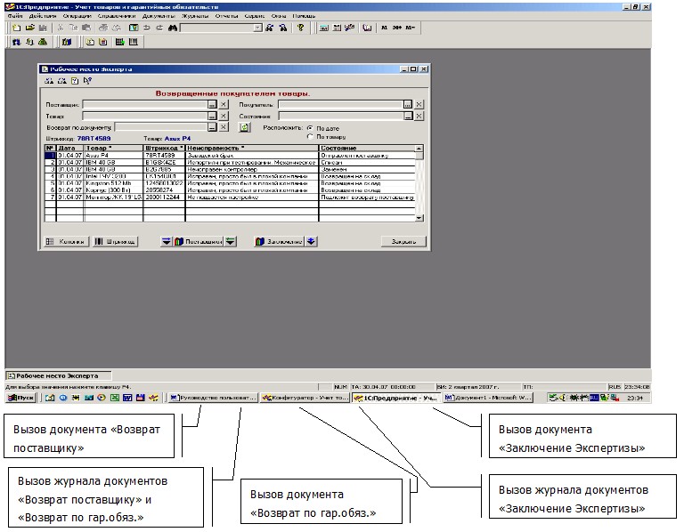 Для удобства дальнейшей работы с товарами, когда – либо возвращенными покупателем предназначена обработка, называемая «Рабочее место Эксперта».