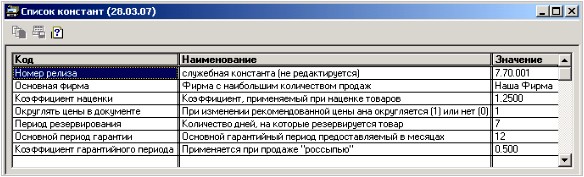 Заполнение констант и справочников (настройка программы)