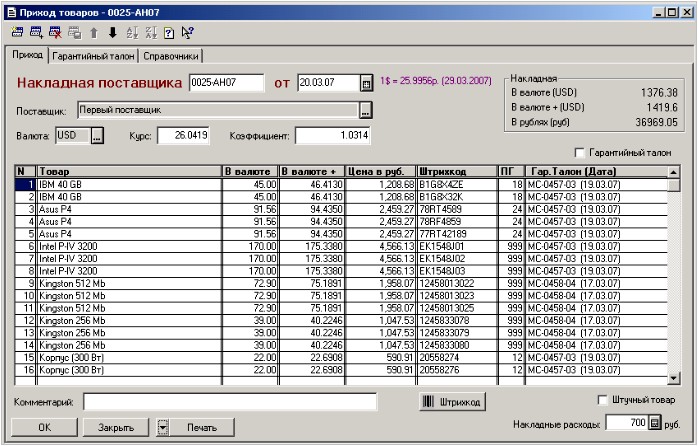 Так же существует еще штрихкод, который можно присвоить гарантийному талону от поставщика. Если его распечатать на обычном принтере, то это может ускорить и упростить процедуру оприходования товаров на склад.