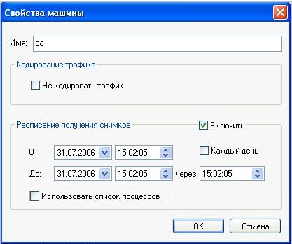Для задания интервала (периода) снятия экранных копий (после снятия, экранная копия в реальном времени отправляется на сервер), а также для задания режима, при котором съем копий будет осуществлять только при активности окон отдельных процессов, должен быть использован интерфейс, приведенный на Рис.4.