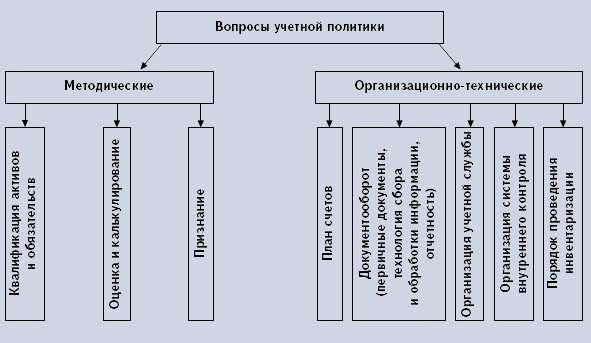 Таким образом, условно всю совокупность решаемых с помощью учетной политики вопросов можно разделить на методические и организационно-технические (рис. 2.3).