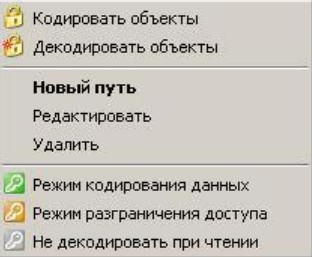Разграничение прав доступа к защищаемым объектам. В СЗД реализовано разграничение прав доступа к защищаемым файловым объектам на основе идентификации групп объектов по ключам (посредством парольного слова, либо ключевой информации на внешнем носителе). Ключ присваивается объекту «группа», в который включаются защищаемые файловые объекты (локальные или удаленные, на жестком диске или на внешнем носителе), права доступа к которым разграничиваются. Какой-либо доступ к защищаемому файловому объекту разрешается только после идентификации группы, в которую включен объект – т.е. только псле введения ключевой информации (либо с клавиатуры, либо путем подключения соответствующего устройства). Разграничивать права доступа можно к файловым объектам, в которых данные сохраняются, как в зашифрованном, так и в обычном виде. Защищаемыми объектами являются любые (назначаемые администратором) файловые объекты – логические диски, каталоги, подкаталоги, файлы (для задания объектов может использоваться механизм масок), как на жестком диске, так и на внешних носителях, как локальные, так и удаленные (разделенные в сети).