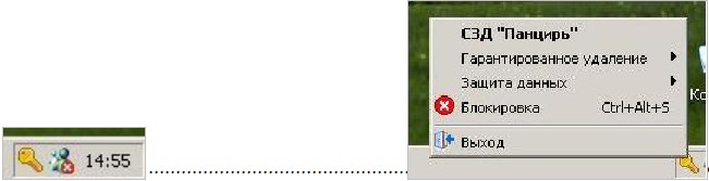 Шифрование данных «на лету». В СЗД реализовано автоматическое «на лету» («прозрачное» для пользователя) шифрование/расшифрование данных при их сохранении в локальный или удаленный файловый объект на жестком диске или на внешнем носителе. При сохранении в удаленный файловый объект, данные по каналу передаются в зашифрованном виде виде. Поддерживаются файловые системы NTFS, FAT32 или FAT16, алгоритмы кодирования: XOR, GOST, DES, AES. Обеспечивается подключение криптопровайдера «Signal-COM CSP» (сертифицирован ФАПСИ по требованиям безопасности информации к классам «КС1» и «КC2» - сертификаты соответствия №СФ/114-0604, №.СФ/124-0605 от 21.04.03), разработчик ЗАО «Сигнал КОМ», и СКЗИ «КриптоПро CSP версия 3.0» (сертифицирован ФСБ РФ по требованиям безопасности информации к классам «КС1» и «КC2» - сертификат соответствия № СФ/124-0810 от 12.09.05), разработчик ООО «КриптоПро», при этом СЗД обеспечивает шифрование и расшифрование «на лету» данных в соответствии с российским криптографическим алгоритмом ГОСТ 28147-89. Поддерживаются различные политики генерации, ввода и хранения ключевой информации. Ключ присваивается объекту «группа», в который включаются защищаемые файловые объекты. Число создаваемых групп и файловых объектов в группе на одном компьютере не ограничено. Ключ может задаваться парольной фразой (не менее 6 символов), из которой затем генерируется автоматически (для идентификации группы парольная фраза вводится с консоли). Также ключ может задаваться полностью: вручную (из файла), системой автоматически, генерироваться посредством движений мыши. Для хранения ключевой информации может использоваться электронный ключ e-Token (Aladdin eToken R2) или ruToken, смарт карта (Aladdin eToken PRO Smart Card 32K), либо файловый объект (локальный, либо удаленный – в сети может быть реализован ключевой сервер, причем вся ключевая информация передается по каналу в закодированном виде), задаваемый его полнопутевым именем, что позволяет хранить ключевую информацию на внешних носителях, в частности, на устройстве Flash-памяти, причем на одном устройстве может храниться необходимое количество ключей, устройство при этом может использоваться по своему прямому назначению. Для идентификации группы (для получения доступа к файловому объекту в группе), системе необходимо единожды считать значение ключа в оперативную память, после чего, ключ может быть удален из системы.