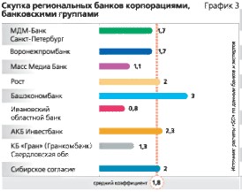 В прошлом году иностранцы активно скупали российские банки в среднем по цене, равной трем капиталам. Российские инвесторы скупали то, что не приглянулось иностранцам, в среднем по цене 1,8 капитала. Самую высокую оценку получили ипотечные банки, их продавали за 5–6 капиталов. Страшная дороговизна! Такие цены бывают только на развивающихся рынках. В целом же вывод «БО»: сейчас в России инвесторы покупают банки «на вырост».
