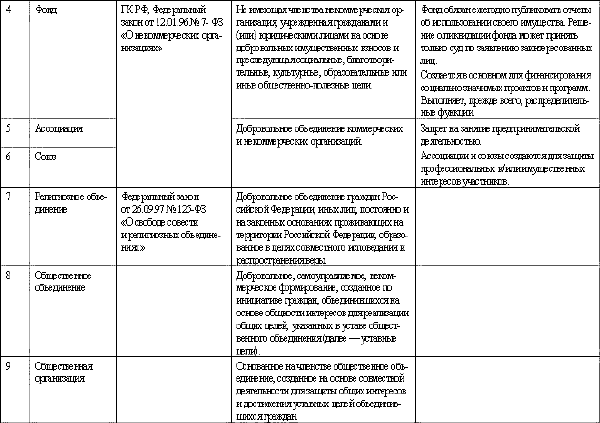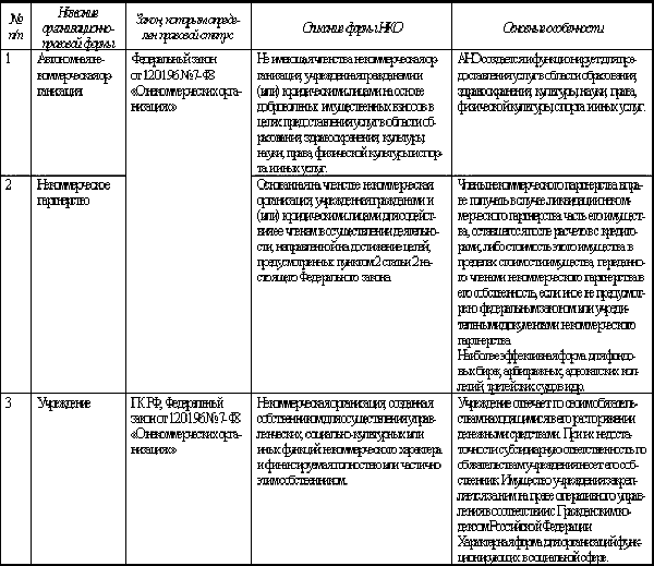 Основные организационно-правовые формы негосударственных некоммерческих организаций