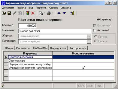 Рис.2 Карточка вида операции, отражаемой в УСН