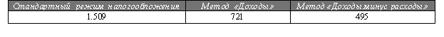 Согласно таблице «упрощенного анализа» рентабельность продаж составляет 0,2 %, т.е. в нашем примере метод «Доходы минус расходы» должен быть выгоднее метода «Доходы». Посмотрим, подтвердят ли это приведенные ниже расчеты.